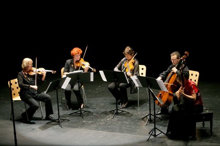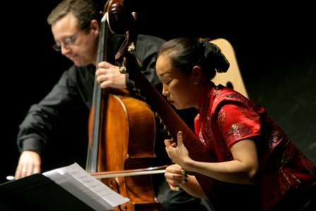 Alicante, 26.09.2007. Teatro Arniches. Xenia Ensemble (Cuarteto). Lui Fang, pipa. Programa: Música tradicional para pipa sola; Chen Yi, At the Kansas City Chinese New Year (I. The Talking Fiddle; II. Making looped noodlest; III. Dragon Sword Dance); Melissa Hui, Rush, para pipa y cuarteto de cuerda; Zhou Long, Song of the Ch in; Tan Dun, Concierto para pipa y cuarteto de cuerda. XXIII Festival de de Alicante. Organizado por el Centro de Difusión de la Musica Contemporánea.